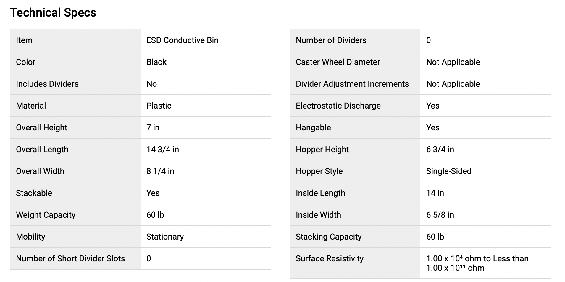 Shelf Bin, ESD